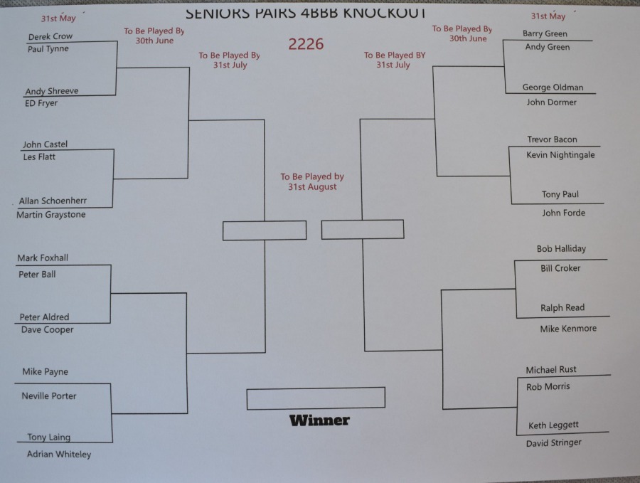 The draws for the Senior knockouts for 2026 will be posted here whe ready. The last dates for each one is detailed.