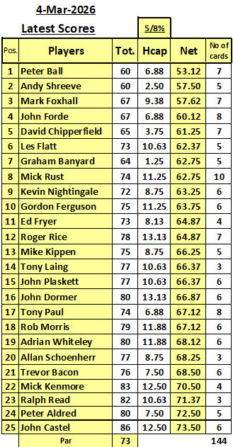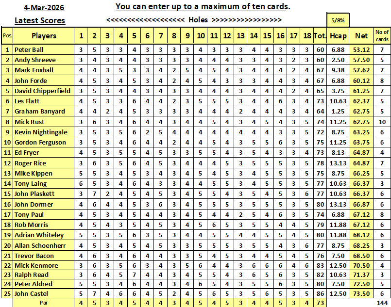 Course Handicaps will be adjusted to 5/8ths on the results spreadsheet